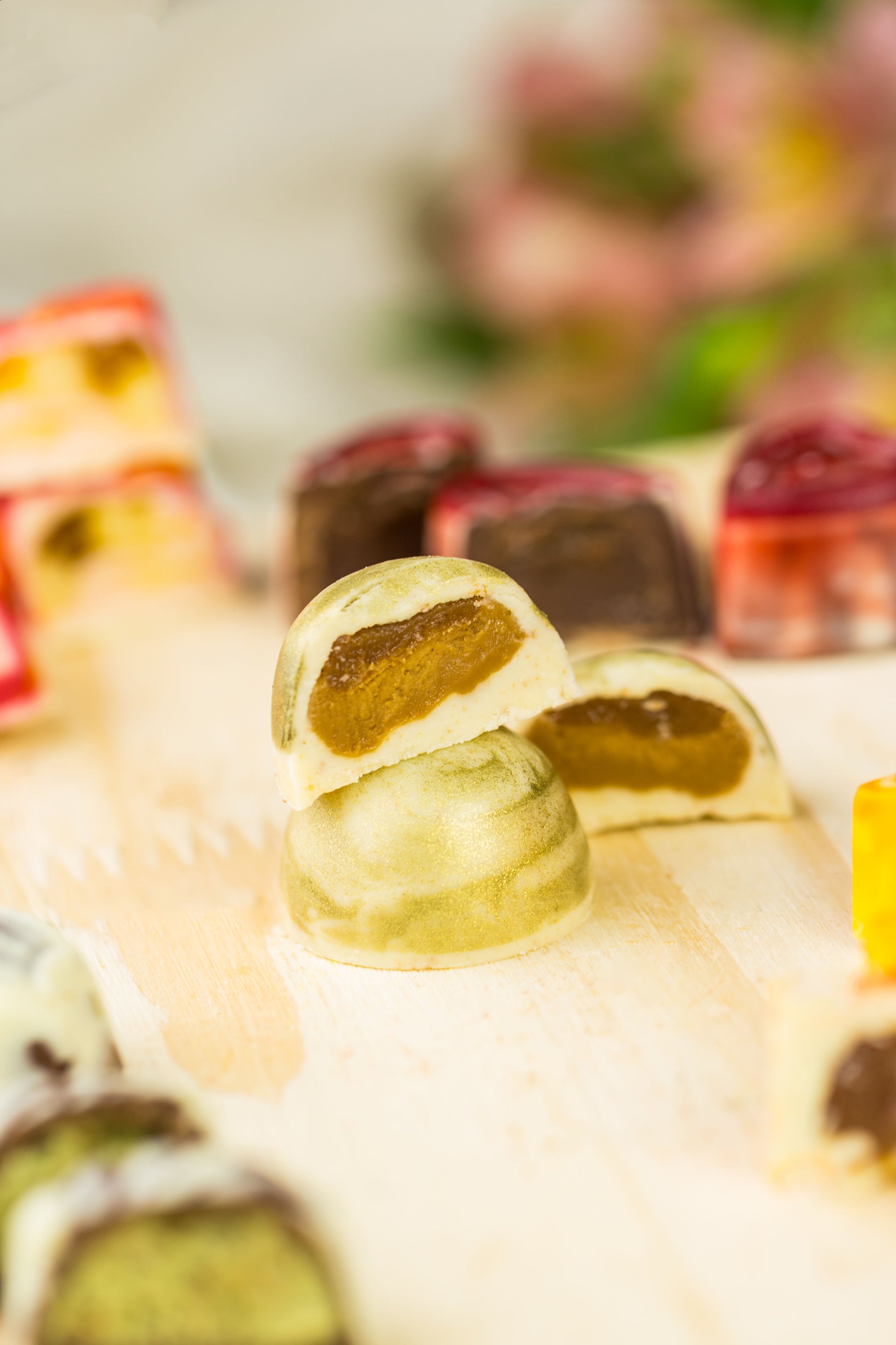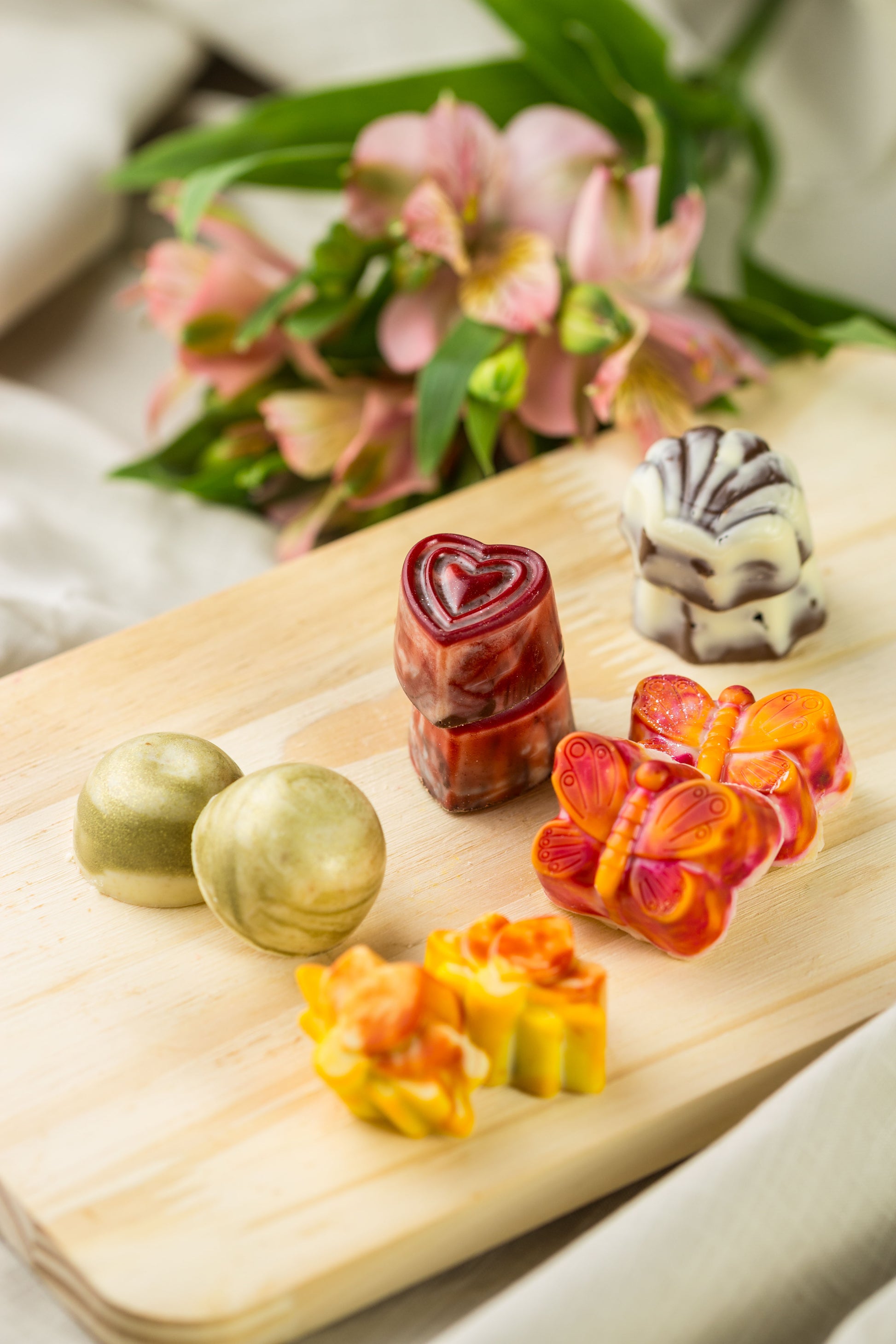 Feitos à mão, em diversas cores e sabores, são joias comestíveis, ideias para presentear o seu amor. Cada bombom carrega intenção, beleza e sabor, porque o encanto também mora nas pequenas mordidas.